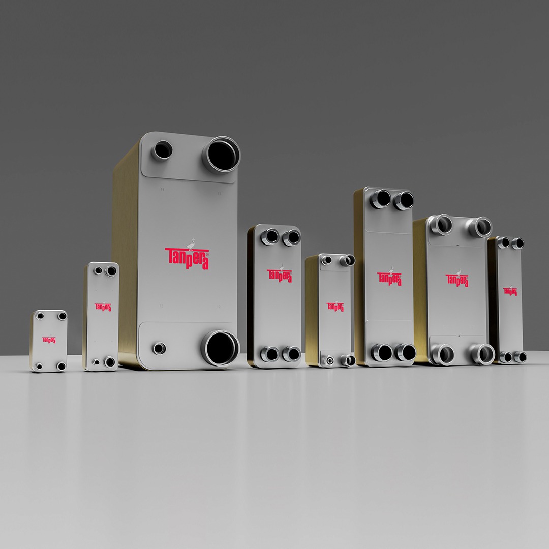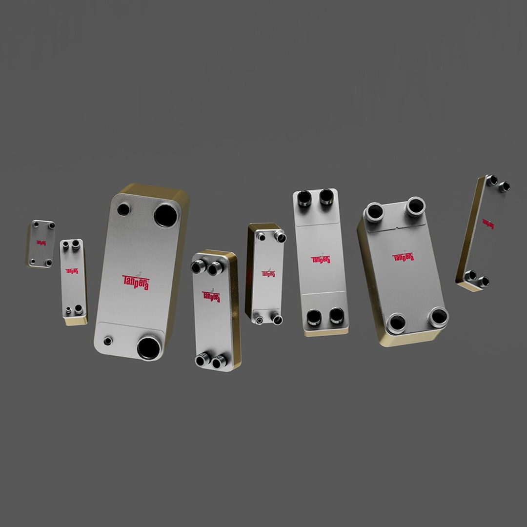 Теплообменники с медными паяными пластинами представляют собой компактную и эффективную систему теплообмена, в которой две отдельные жидкости передают тепло, перемещаясь между пластинами. Узкие проточные каналы между пластинами из нержавеющей стали увеличивают турбулентность жидкостей, обеспечивая максимальный теплообмен. Одна из жидкостей движется по горячей стороне, а другая – по холодной, и теплопередача происходит между пластинами. Пластины, соединенные медным припоем, образуют герметичную конструкцию, благодаря чему жидкости безопасно циркулируют, не смешиваясь. Благодаря этому принципу обеспечивается эффективный и долговечный теплообмен, устойчивый к высокому давлению и перепадам температур.